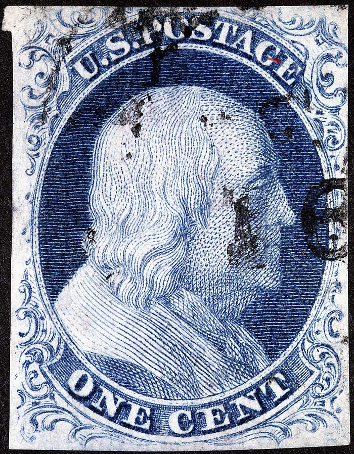 1¢ Franklin Issue of 1851-1857, PLATE 1 EARLY Position 15L1E, (Scott #7) |