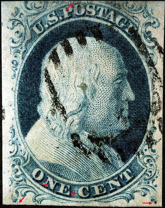 1¢ Franklin Issue of 1851-1857, PLATE 1 EARLY Pos 29L1E, (Scott #7) Type II |