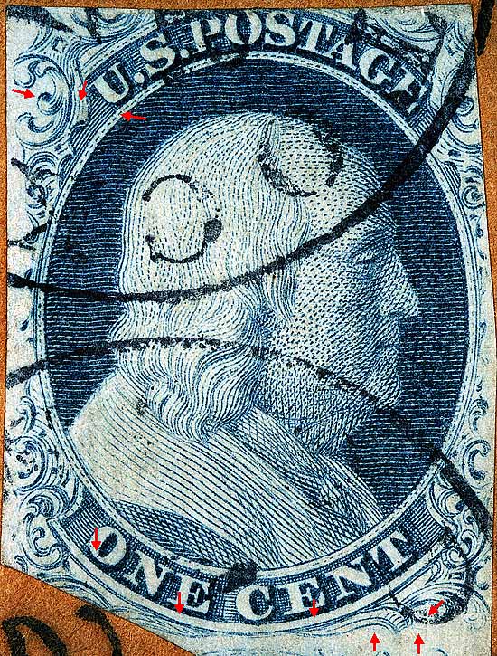 1¢ Franklin Issue of 1851-1857, PLATE 1 EARLY Position 33L1E, (Scott #7) |