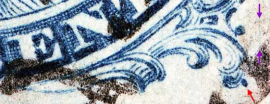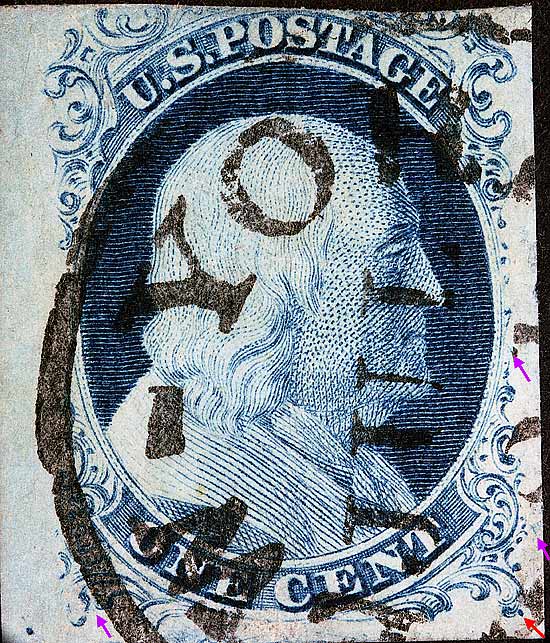 1¢ Franklin Issue of 1851-1857, PLATE 1 EARLY Position 41L1E (Scott #7) Type II |