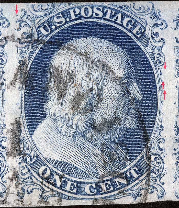 1¢ Franklin Issue of 1851-1857, PLATE 1 EARLY Position 97L1E Type II |