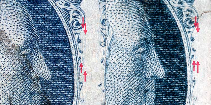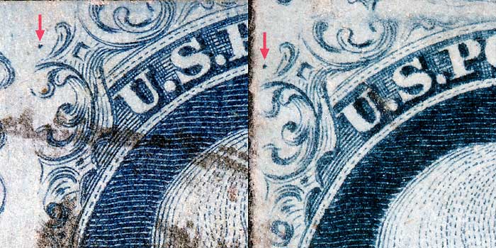 | Figure 1. (BELOW). Heavy dot of color plating mark to the left of Ornament S1 as illustrated in the Neinken/Ashbrook plating diagrams.