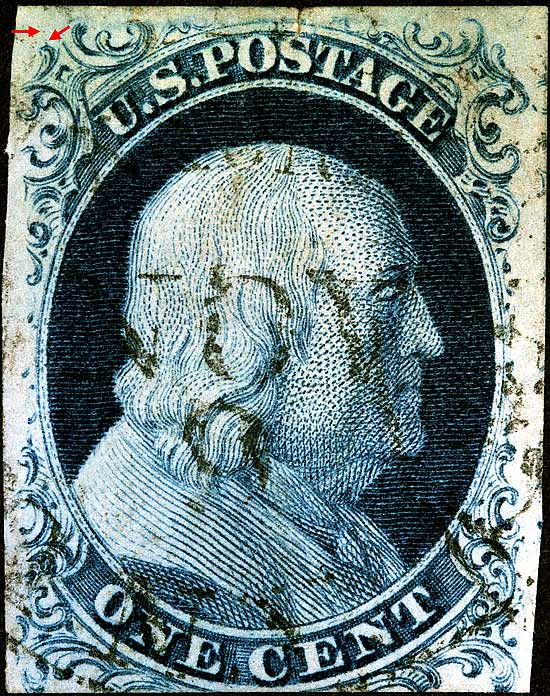 1¢ Franklin Issue of 1851-1857, PLATE 1 EARLY Pos 64R1E, (Scott #7) |