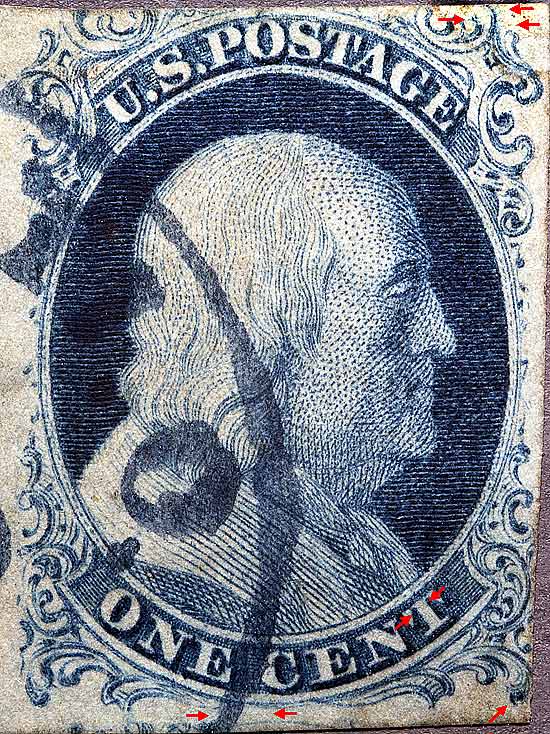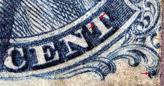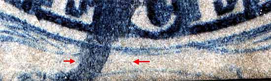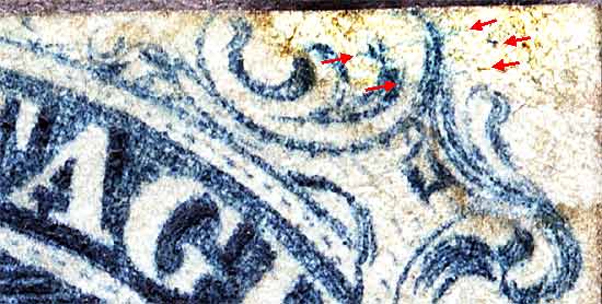 | Figure 1. (Below) Close up detail of the 2 very faint plating marks in Ornament Z as illustrated in the plating diagram.