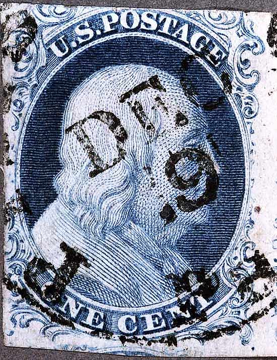 1¢ Franklin Issue of 1851-1857, PLATE 1 EARLY Pos 88R1E (Scott #7) |