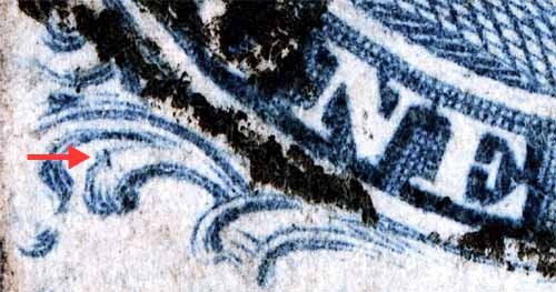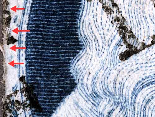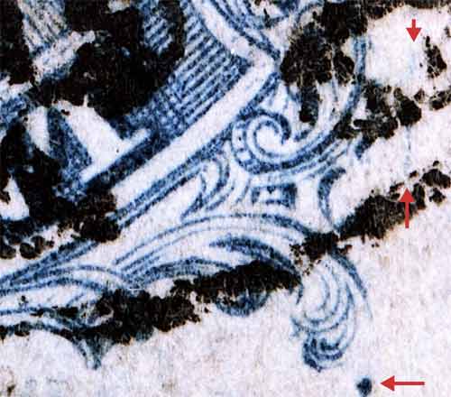 | Figure 3. (below) Long vertical scratch below and to the left of Ornament "D".
