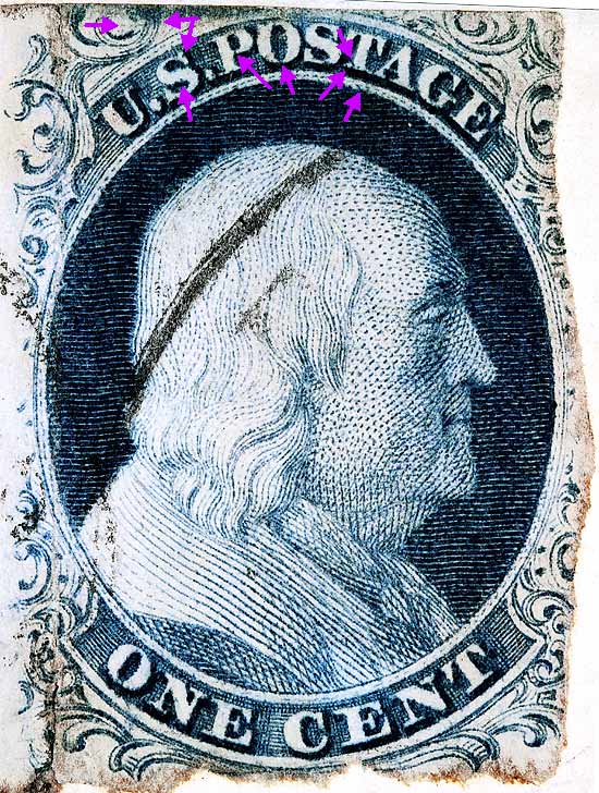 1¢ Franklin Issue of 1851-1857, PLATE 1 EARLY Pos 89R1E (Scott #7) |