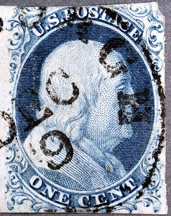 | Scott #7 Blue, Type II Only Issued Imperforate Relief B First Condition |