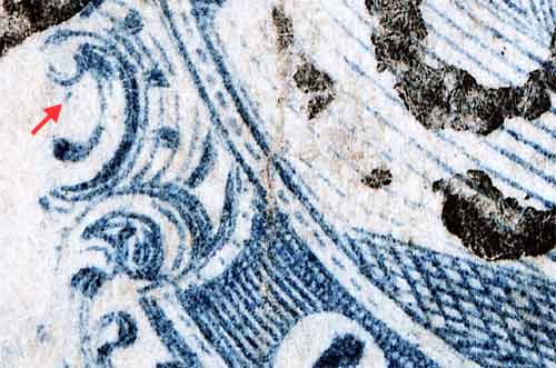 | Figure 2. (below) The Ashbrook / Neinken plating diagram also shows a dot under Ornament "F" which can be clearly seen here.