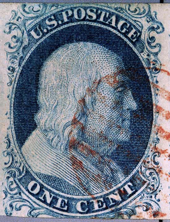 | Scott #7 Blue, Type II, Relief B, First Condition Only Issued Imperforate |