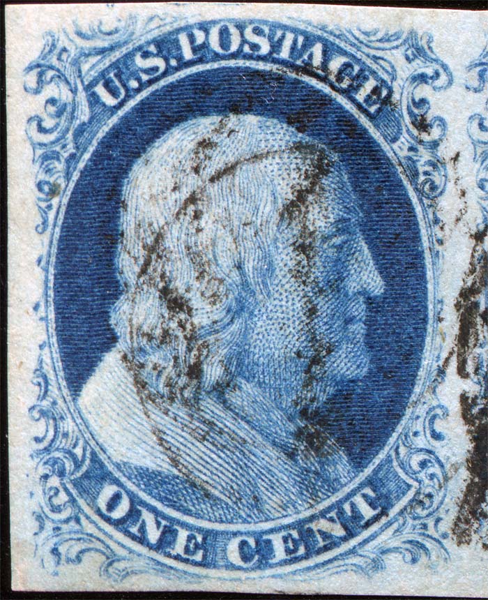 1¢ Franklin Issue of 1851-1857, PLATE 1 EARLY Position 96R1E Type IIIa |