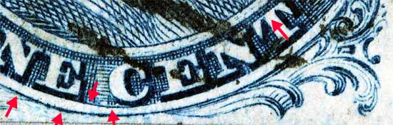 | 1¢ Franklin Issue of 1851-1857, PLATE 1 LATE.