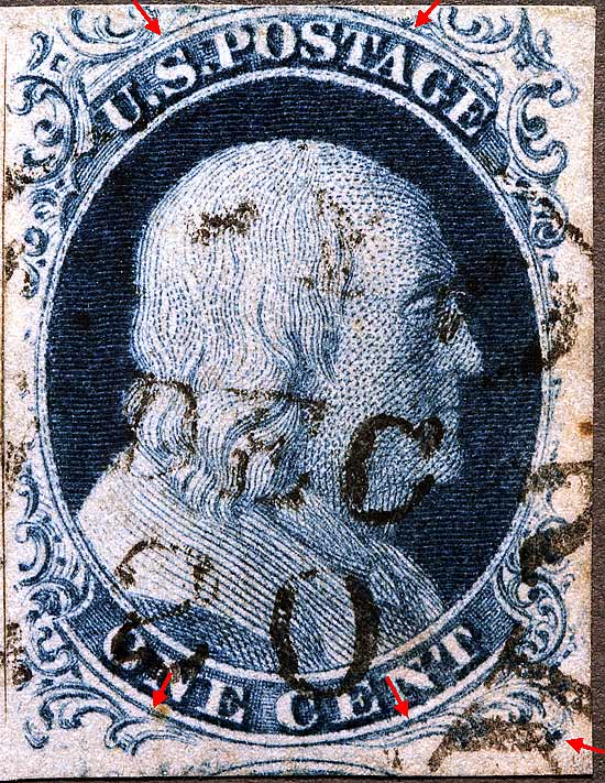 | 1¢ Franklin Issue of 1851-1857, PLATE 1 LATE.