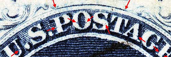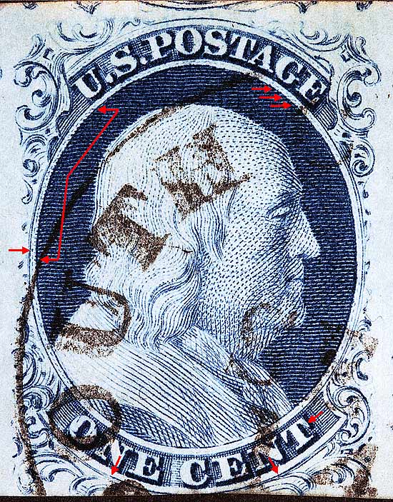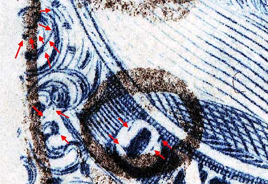 | Figure 2. (Below) Heavy double transfer plating marks as indicated in the Ashbrook/Neinken plating diagrams.