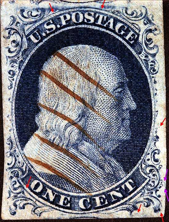 | 1¢ Franklin Issue of 1851-1857, PLATE 1 LATE.