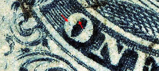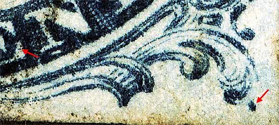 | Figure 2. (Below) Detail view of plating mark shown in the Ashbrook/Neinken plating diagrams. Also note GUIDE DOT position.