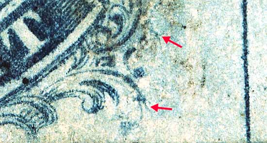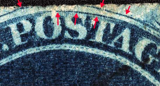 | Scott #9 Blue, Type IV, Relief A Issued both imperforate and perforated. Perforated copies are more scarce. DOUBLE RECUT TOP and SINGLE RECUT BOTTOM Specimen Courtesy of Dennis Rice |
