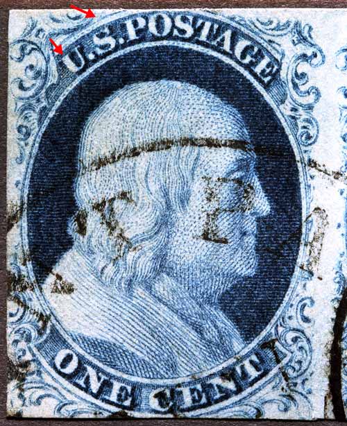 1¢ Franklin Issue of 1851-1857, PLATE 1 LATE. Pos 75L1L, (Scott #9) |