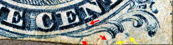 | Figure 1. (Below) Red Arrows indicate plating marks shown in Neinken. The yellow arrows indicate marks that may not be consistant.