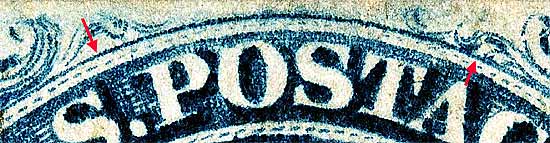 | Figure 3. (Below). Detail of the definative plating mark found above Ornament "L."