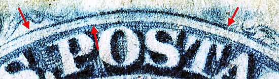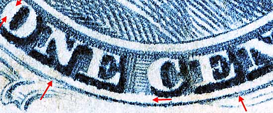 | Figure 3. (Below). Detail of the SINGLE RECUT BOTTOM line. There is a faint vertical line in the "O" of ONE which can barely be seen on this impression.