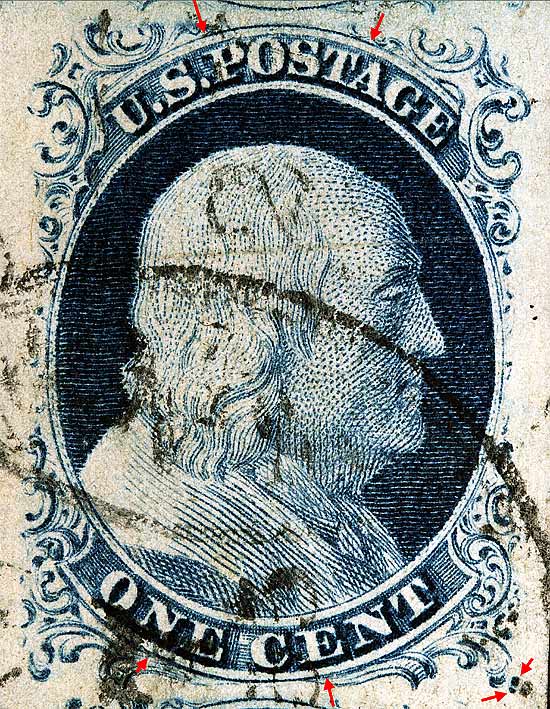| 1¢ Franklin Issue of 1851-1857, PLATE 1 LATE.