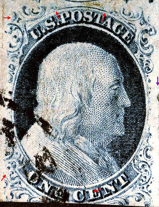 | 1¢ Franklin Issue of 1851-1857, PLATE 1 LATE.