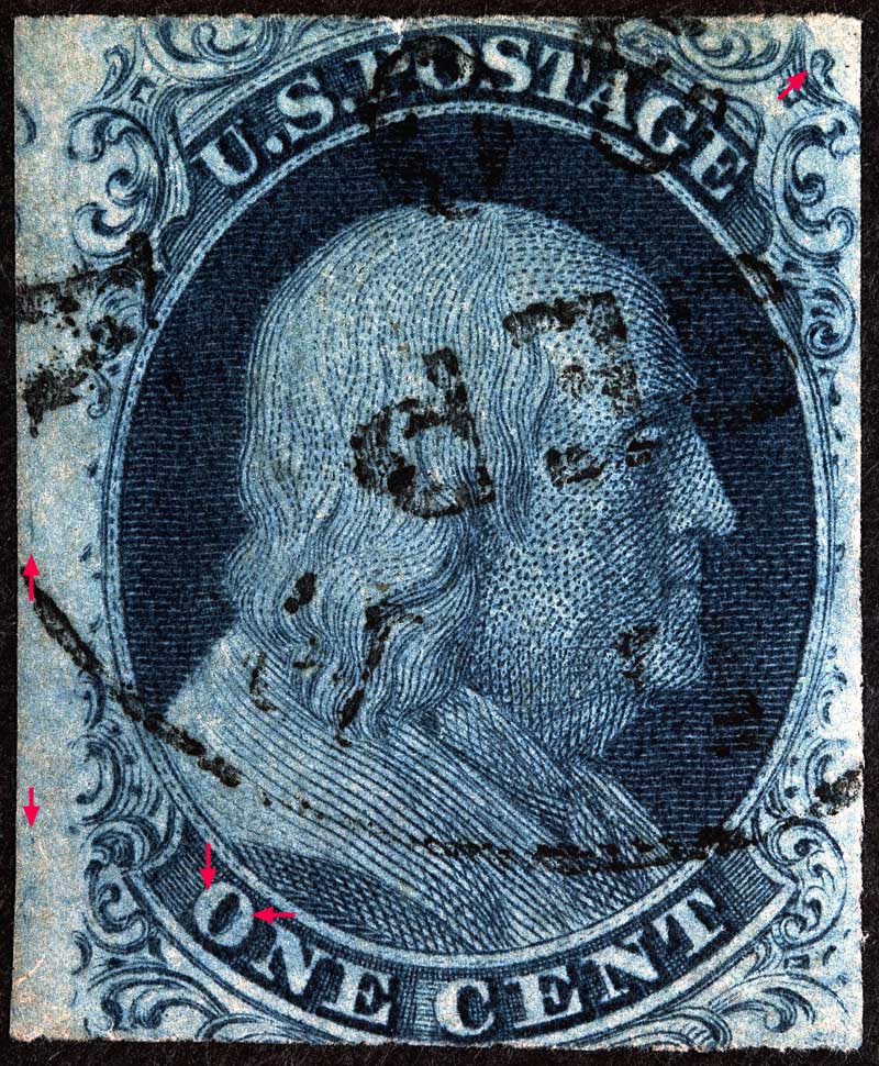 1¢ Franklin Issue of 1851-1857, PLATE 3 Position 58L3 |