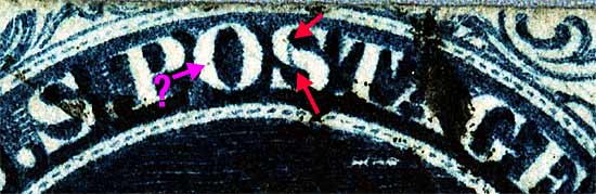 | Figure 1. (Below) Red arrows point to the "S" CURL. The violet arrow are marks of interest not shown in the plating diagrams and may not be constant.